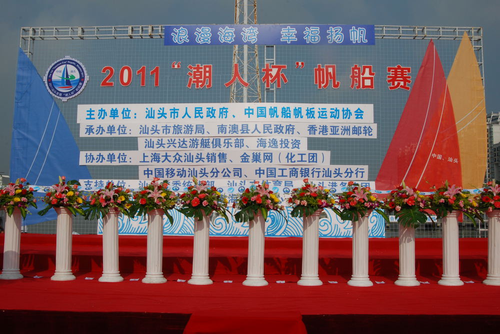 于2011年5月21日上午9时,万众瞩目的“浪漫海湾 幸福扬帆”中国·汕头帆船巡游活动暨“潮人杯”帆船巡游赛开幕式在汕头市国际客运码头举行。广东省旅游局副局长张振林;银川市政协主席、市委常委、组织部长郑震,银川市委常委、副市长杨柳,香港潮属社团总会主席许学之;汕头市领导郑人豪、余健明、许瑞明;深圳市帆船帆板运动协会主席傅亮等领导、嘉宾出席了开幕仪式。副市长余健明主持开幕式。
