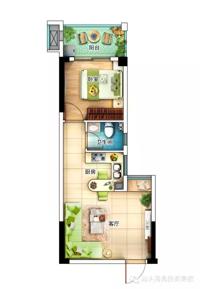 3)次卧连接观景阳台,增添绿色生活韵味;