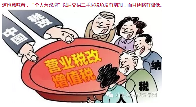 此次“营改增”推行,个人二手房交易的营业税将改为增值税征收。此变化所带来的税负相对来说仍属稳定,因为过去二手房营业税的征税政策和免税政策均被平移过来;也就是说,过去征营业税5%,现在改为增值税仍是5%。